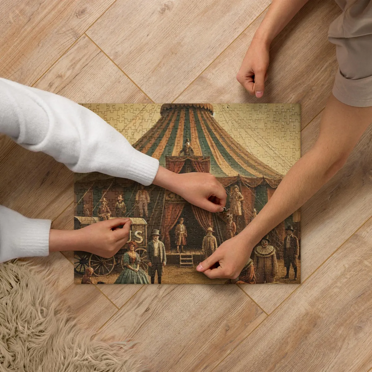 Immerse yourself in the magic of a bygone era with this captivating vintage circus puzzle. Featuring a beautifully detailed scene from the early 1900s, this puzzle transports you to a rustic circus ground where acrobats soar, clowns perform, and a ringmaster in a worn top hat directs the show. With its sepia tones and antique atmosphere, every piece of this puzzle brings to life the charm and nostalgia of an old-time traveling circus.